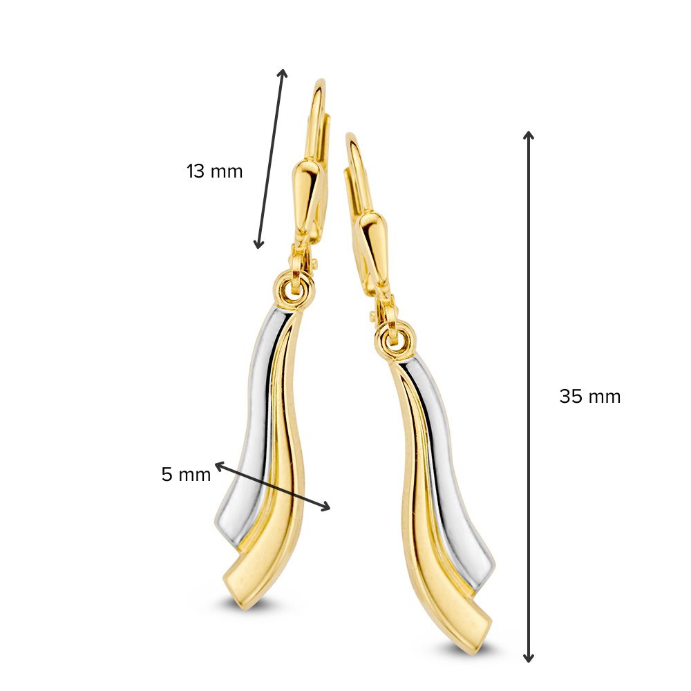 Met een gewicht van slechts 1,7 gram zijn deze oorhaken licht en comfortabel om te dragen. Hun lengte van 35 mm zorgt voor een elegante uitstraling die niet te opvallend is, maar toch de aandacht trekt door de prachtige bicolor afwerking. Door het gebruik van geel- en witgoud hebben deze oorbellen een verfijnde balans, waardoor ze zowel stoer als vrouwelijk ogen, afhankelijk van hoe je ze combineert met je andere sieraden.