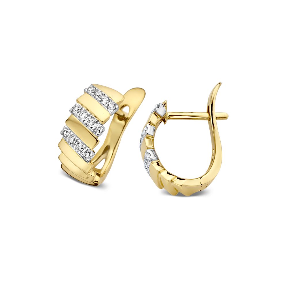 Bicolor Geel- en Witgouden Oorringen met Diamant – 14 Karaat Oorringen met 0.14 Carat Diamanten
