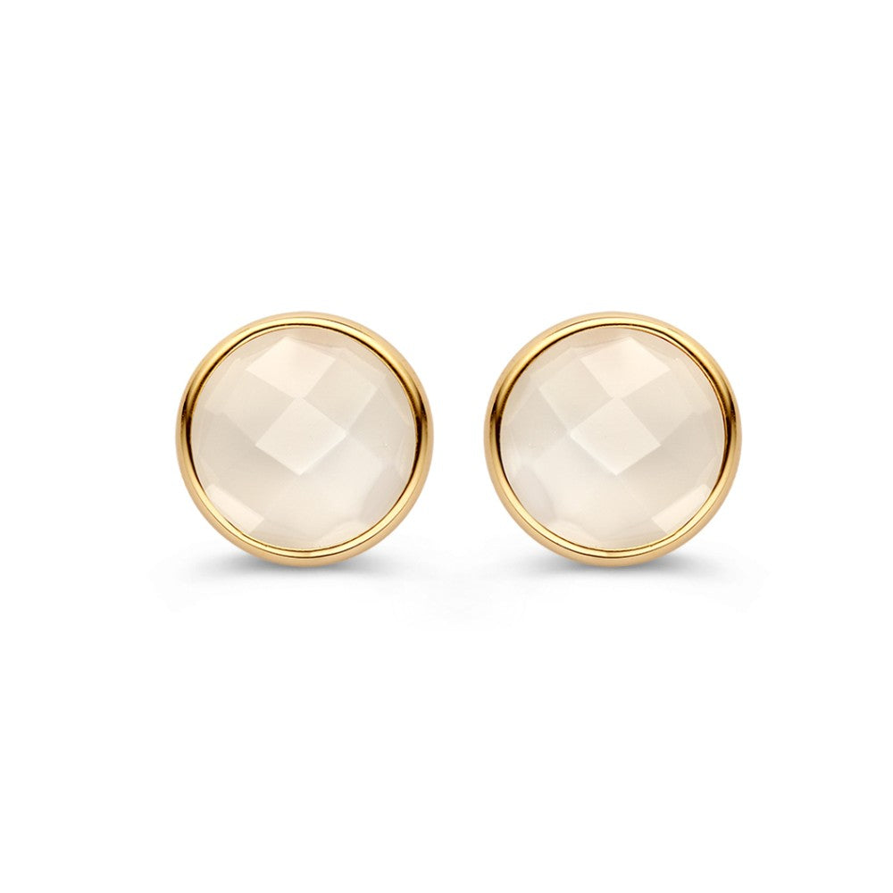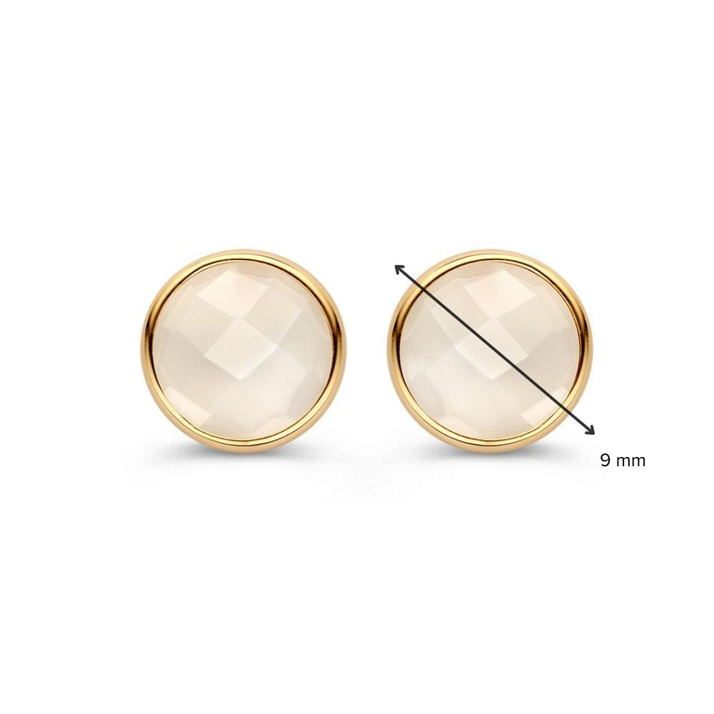 Elegante Geelgouden Oorstekers met Witte Maansteen – 14 Karaat