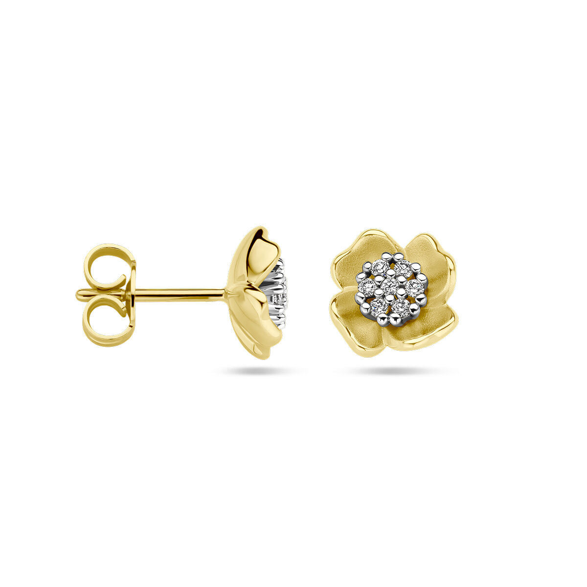 oorknoppen bloem diamant 0.10ct (2x 0.05ct) h si 14K bicolor goud geel/wit