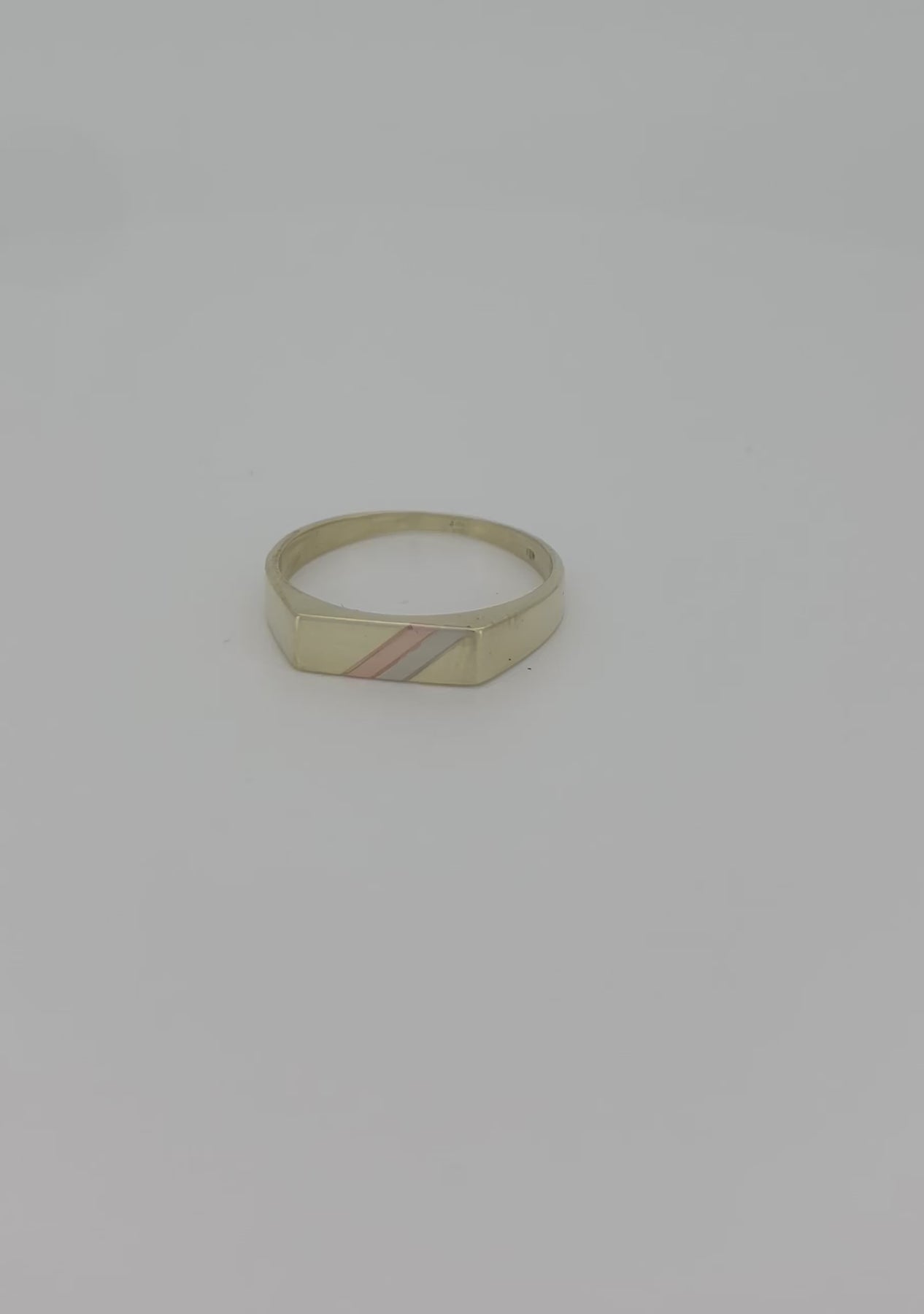 Deze 14k geelgouden tricolor ring maakt deel uit van onze Vintage Collectie. Na het inruilen van dit sieraad door de vorige eigenaar, heeft de ring uitgebreid onderhoud gehad. Hierbij zijn werkzaamheden uitgevoerd zoals een grondige reiniging, polijsten en een gedetailleerde controle.