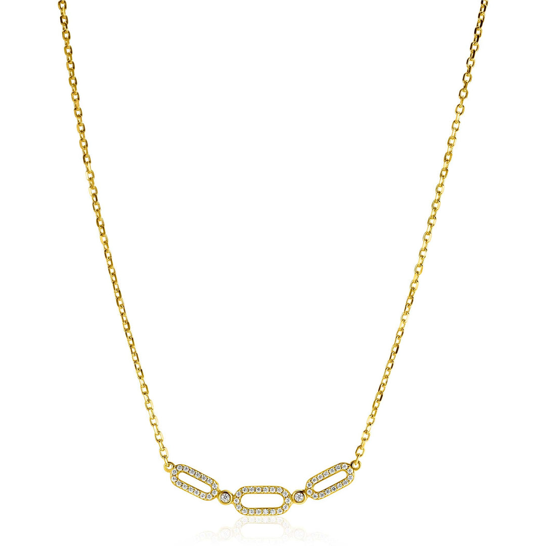 ZINZI gold plated zilveren ketting 45cm met drie ovale schakels, bezet met witte zirconia's ZIC2398Y